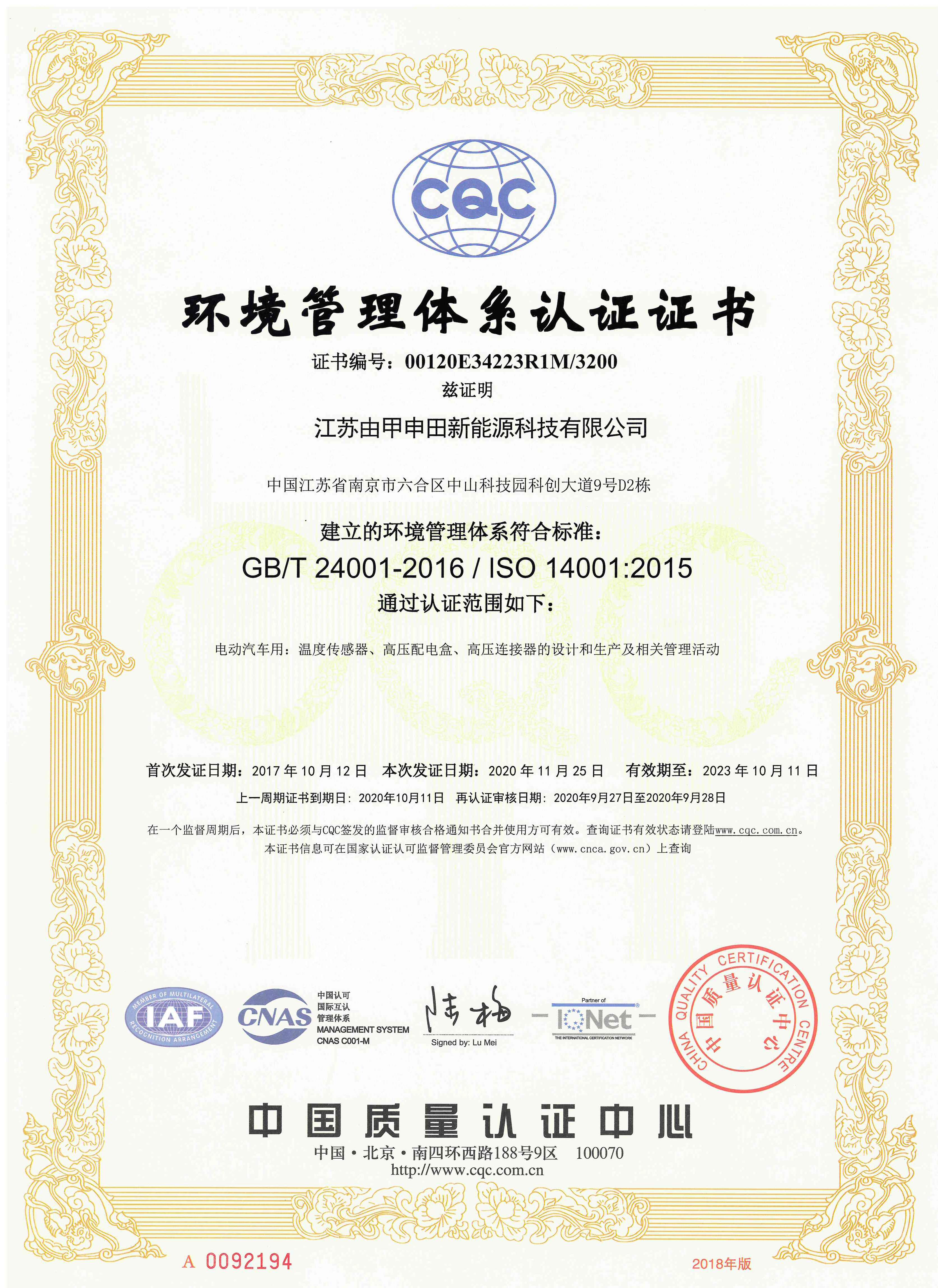 由甲申田ISO14001